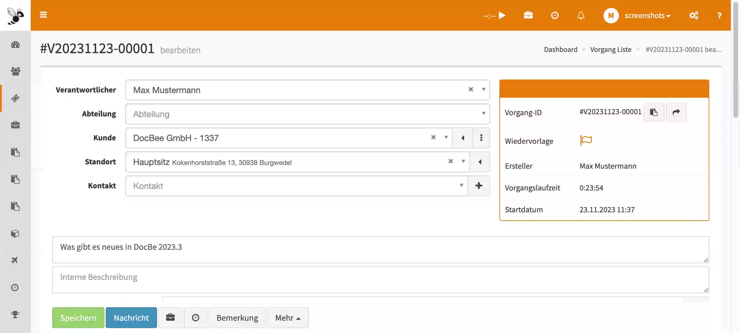 • Verbessert: E-Mails können jetzt optional eine "Vorgangs-/Leistungs-Nachricht" generieren, falls durch das Event ein entsprechender Vorgang oder eine Leistung gefunden wird.