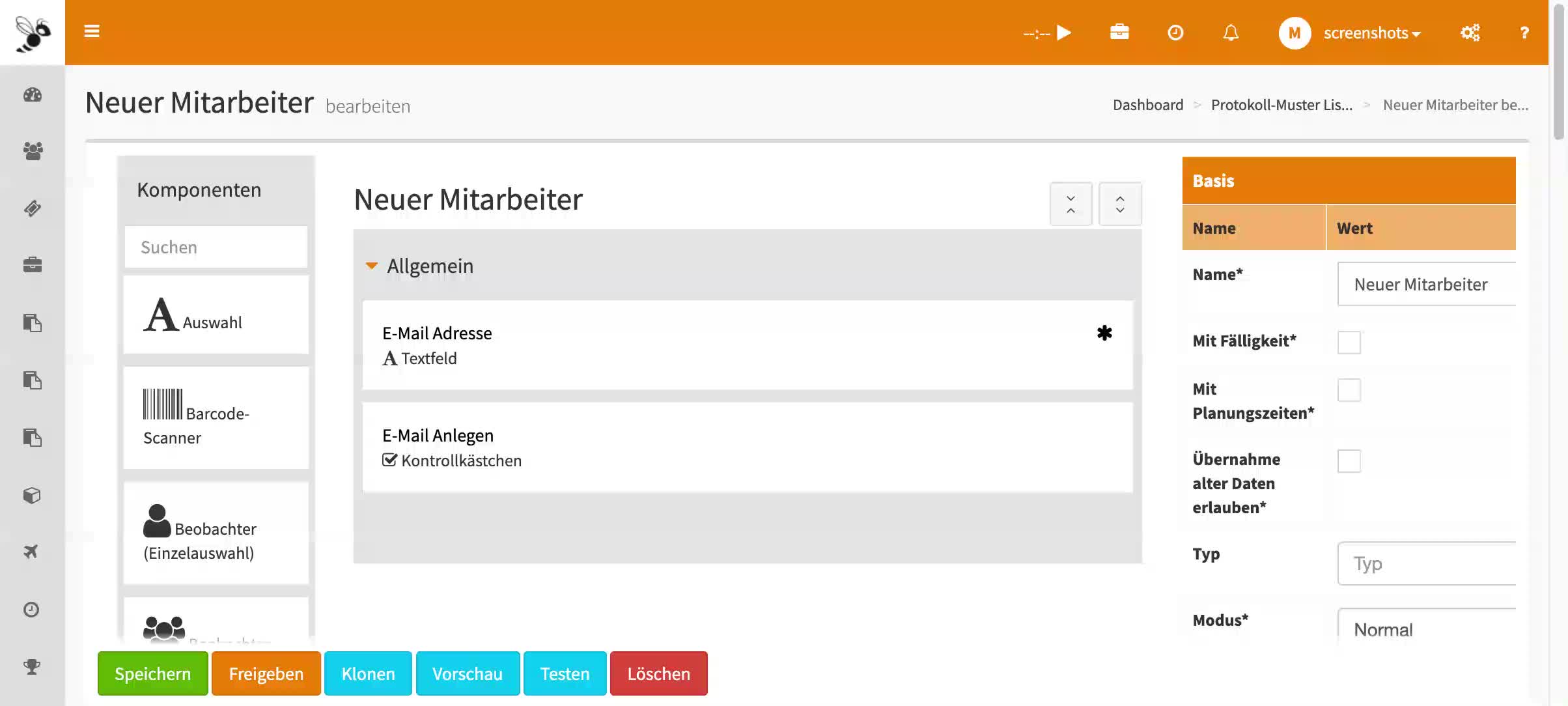 • Automatischer E-Mail-Versand: Versenden Sie automatisch E-Mails nach Abschluss von Protokollen.