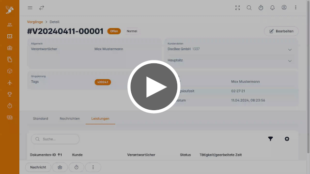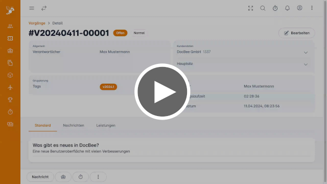 • Neu: %DOCBEE_VORGANGS_ID%, %VORGANGNUMMER%, %VORGANG_FÄLLIGKEIT%, %VORGANG_FÄLLIGKEIT_INKL_TÄTIGKEIT%, %VORGANG_STATUS%, %VORGANG_PRIORITÄT%, %VORGANG_VERANTWORTLICHER%, %VORGANG_VERANTWORTLICHER_ABTEILUNG%, %VORGANG_VERANTWORTLICHER_EMAIL%, %VORGANG_VERANTWORTLICHER_MOBIL%, %VORGANG_VERANTWORTLICHER_TELEFON%, %VORGANG_REFERENZNUMMER%, %VORGANG_ABTEILUNG%, %VORGANG_KATEGORIE%, %VORGANGSLINK_KUNDE%, %VORGANGSLINK%, %VORGANG_BESCHREIBUNG%, %VORGANG_BESCHREIBUNG_KURZ%, %VORGANG_INTERNE_BESCHREIBUNG%, %VORGANG_INTERNE_BESCHREIBUNG_KURZ%, %VORGANG_TAGS%, %VORGANGNUMMER_MIT_KUERZEL%, %VORGANG_KUNDENOBJEKT_NAME%, %VORGANG_KUNDENOBJEKT_ERWEITERTERNAME%, %VORGANG_KUNDENOBJEKT_NUMMER% und %VORGANG_KUNDENOBJEKT_ANSCHAFFUNGSTAG% können nun bei Leistungen & Protokollen verwendet werden, falls die Leistung bzw. das Protokoll mit dem Vorgang verknüpft ist.