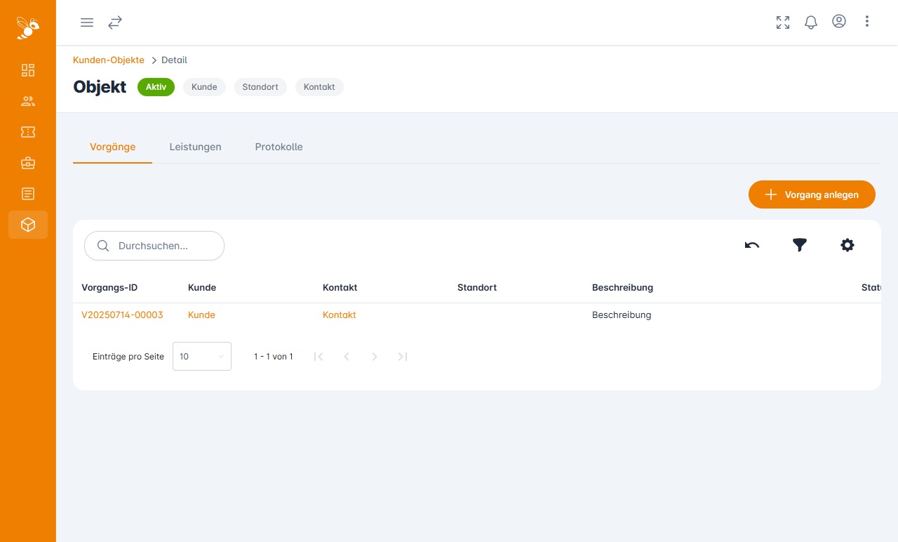 • Neu: In der Detailansicht eines Kunden-Objekts werden die zugehörigen Vorgänge, Leistungen und Protokolle angezeigt.