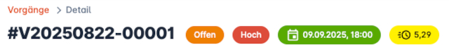 - Neu: Neue Funktion "Dringlichkeits-Score" hinzugefügt (muss in den Vorgangs-Einstellungen aktiviert werden). Dieser Score definiert sich aus Priorität, Fälligkeit, SLA-Fälligkeit, verbleibender Arbeitszeit, Kunde und verknüpften Vorgängen, um eine Zahl zwischen 0.0 und 10.0 zu definieren, die die Dringlichkeit eines Vorgangs angibt. Wird in der Vorgangs-Ansicht, Tabellen und Boards angezeigt und kann gefiltert und sortiert werden.