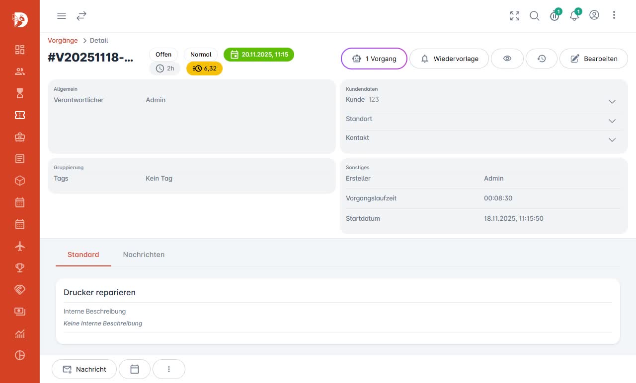 - Verbesserung: Bei der Vorgangs-Anlage über einen Kunden-Login werden auch die Felder aus der Vorlage übernommen, die der Kunde nicht sehen darf (z.B. Tags)