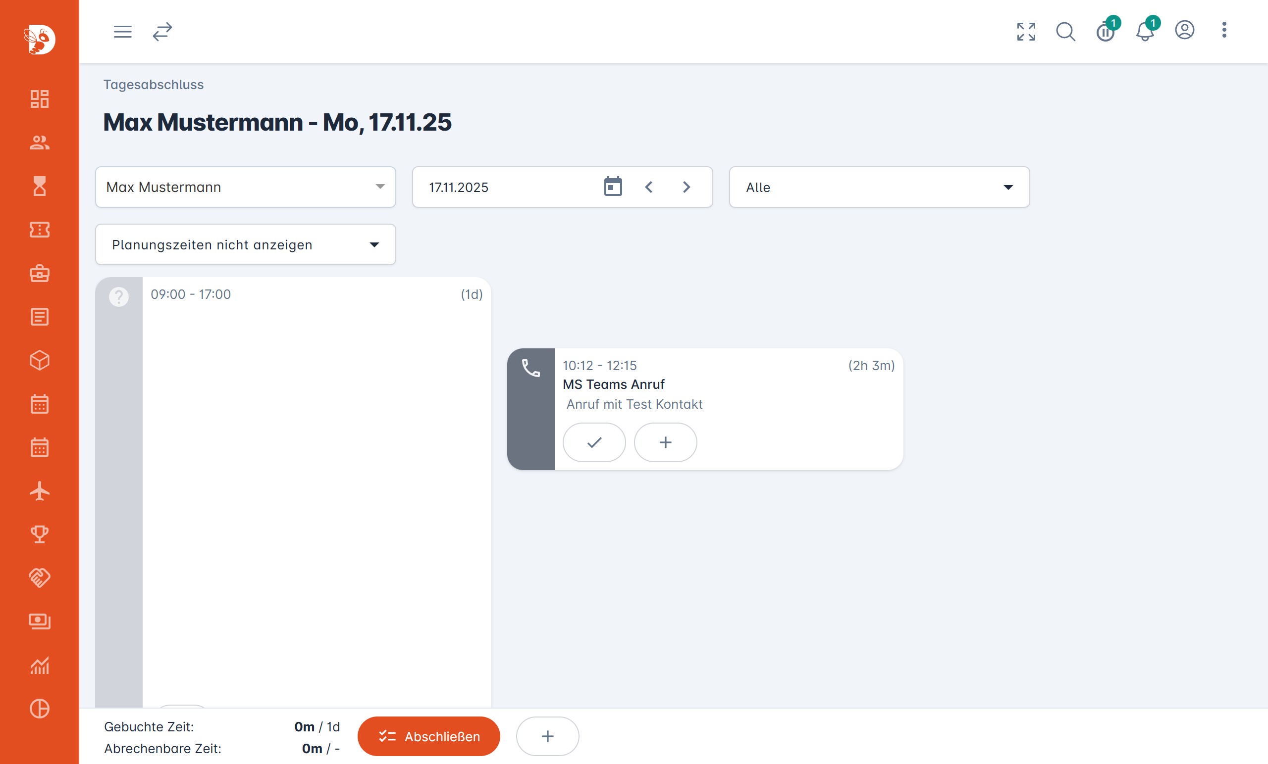 Die Integration von MS Teams ermöglicht es, getätigte Telefonanrufe mit einer automatischen Kontaktzuweisung direkt im Tagesabschluss anzuzeigen. Abrechenbare Zeitaufwände, die über Anrufe entstehen, werden automatisch dokumentiert und gehen nicht mehr verloren. Besonders hervorzuheben ist, dass auch an Teams angebundene Telefonanlagen vollständig abgebildet werden – inklusive PSTN-Anrufen.